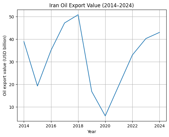 Chart 2. Value of Iran’s oil exports (by years) (in US dollars) (Data: TradeIMEX)