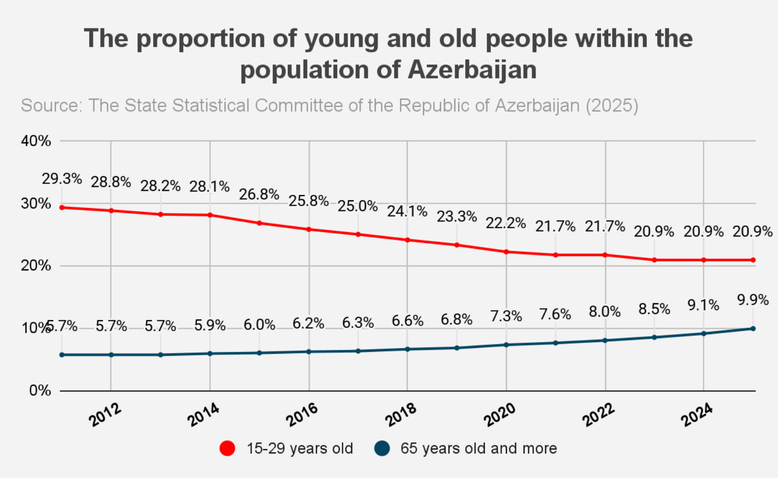Chart 3. The proportion of young and old people within the population of Azerbaijan.